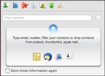 La barra degli strumenti ti permette di accedere a varie funzioni: aggiunta/importazione di contatti, rubrica, cronologia, widget da mettere su Facebook o MySpace per essere subito rintracciabili anche dal web. Tuttavia questa versione per Mac non supporta ancora una delle funzioni più interessanti: chiamate VoIP a fissi e cellulari tradizionali.
